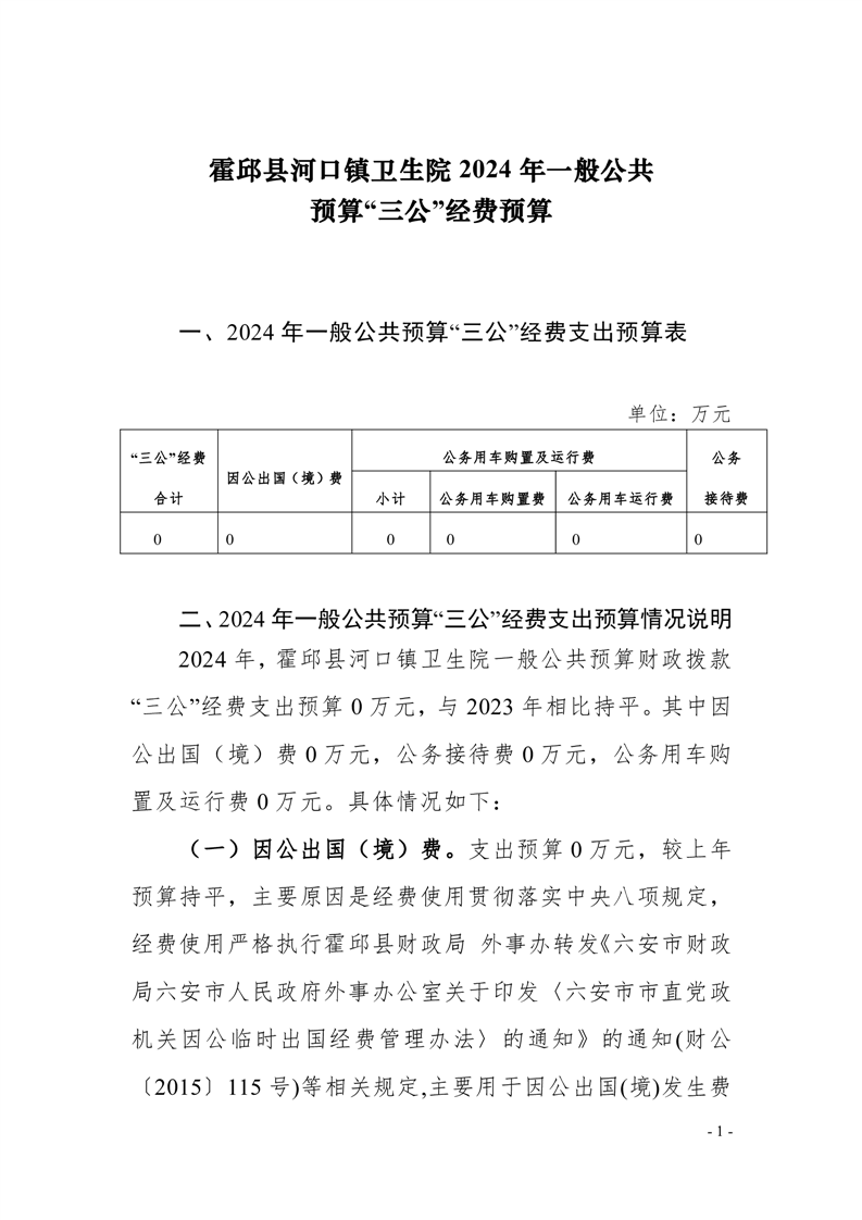 霍邱县河口镇卫生院2024年单位一般公共预算安排“三公”经费预算情况公开