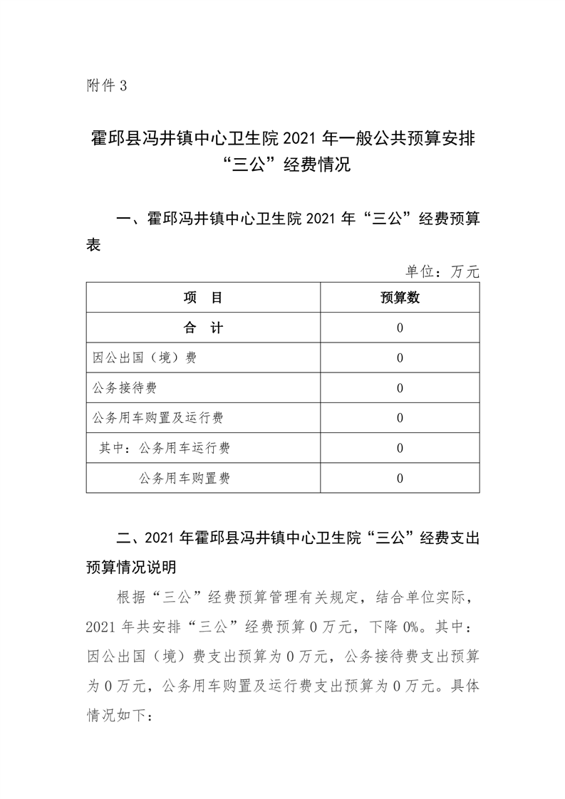 霍邱县冯井镇中心卫生院2021年单位“三公”经费预算公开