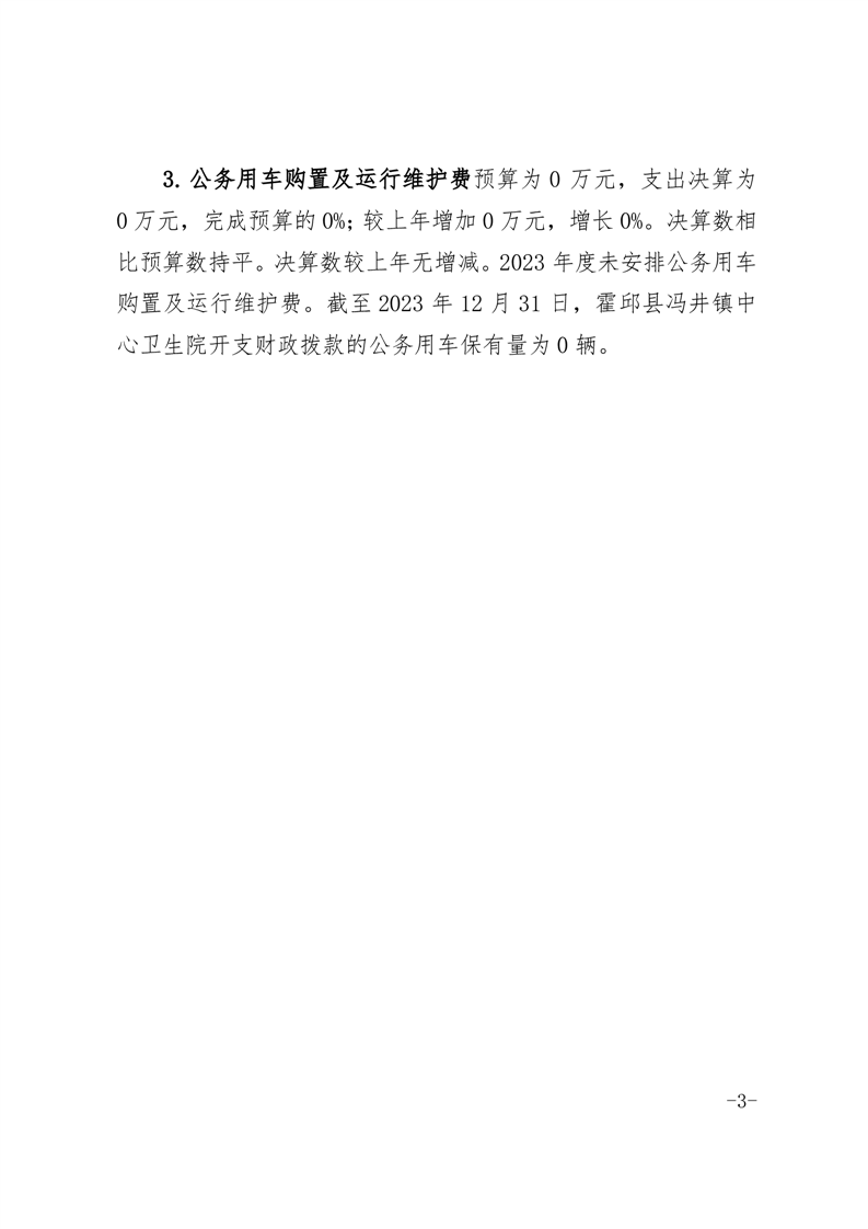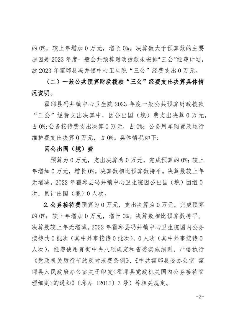 霍邱县冯井镇中心卫生院2023年度一般公共预算财政拨款“三公经费”支出决算