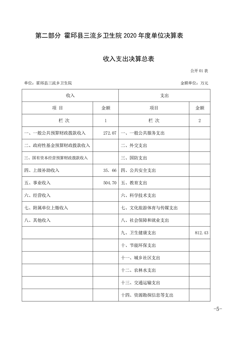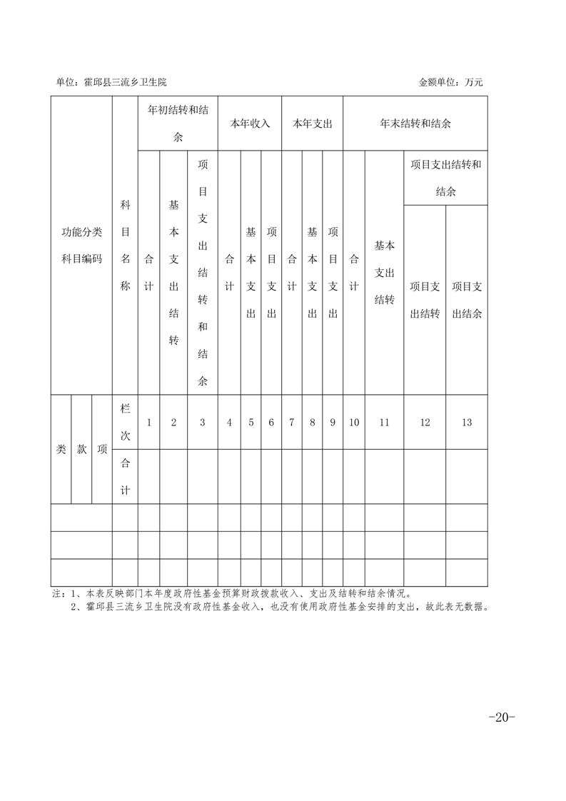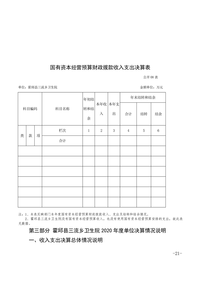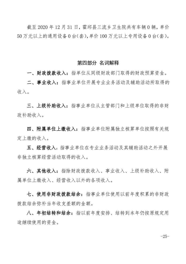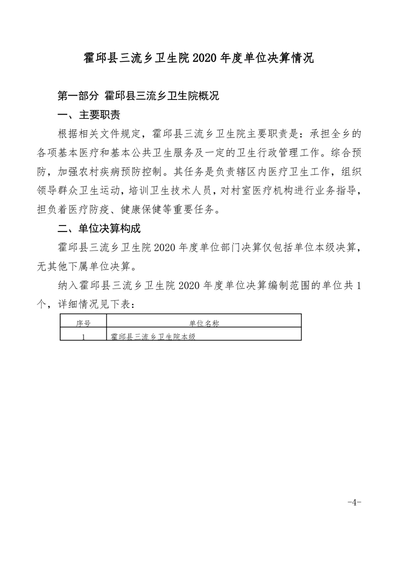 霍邱县三流乡卫生院2020单位决算公开