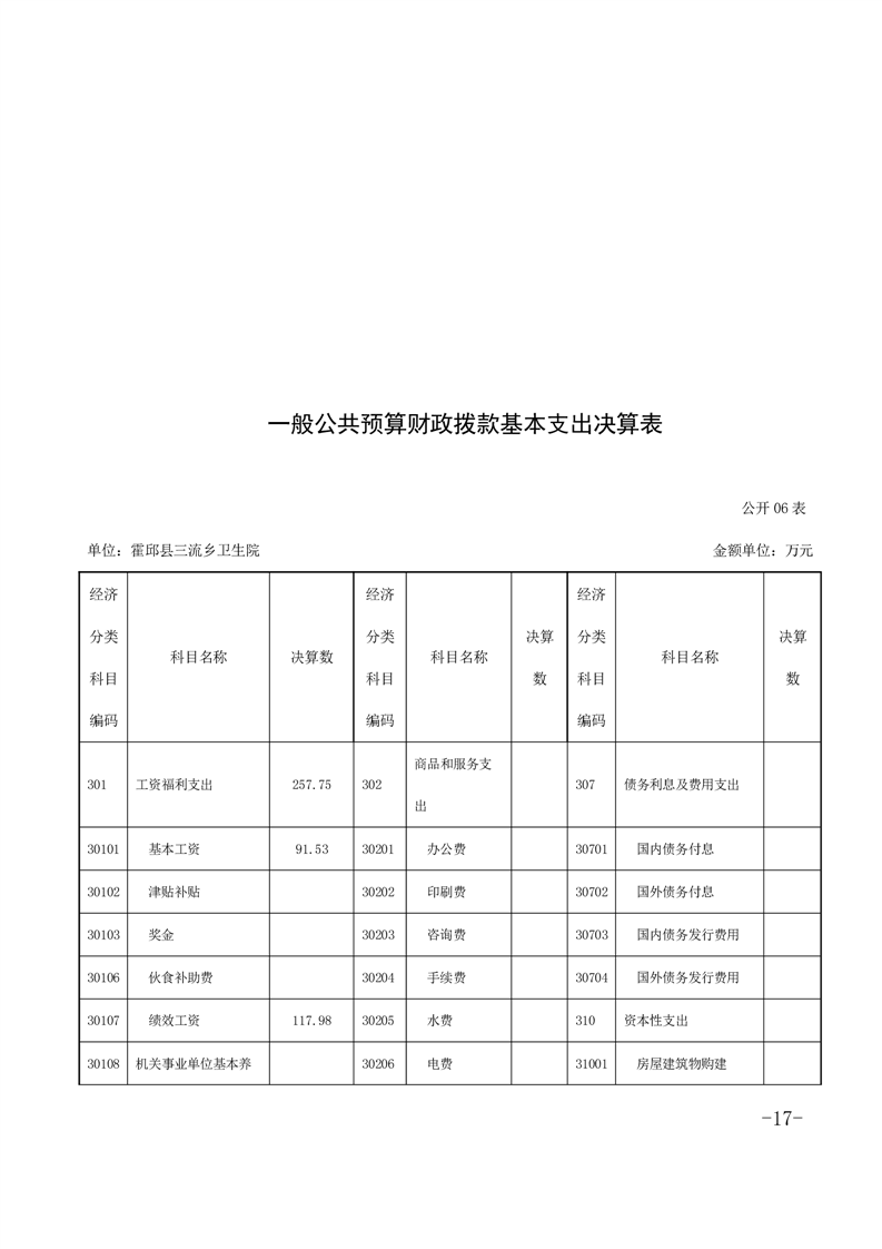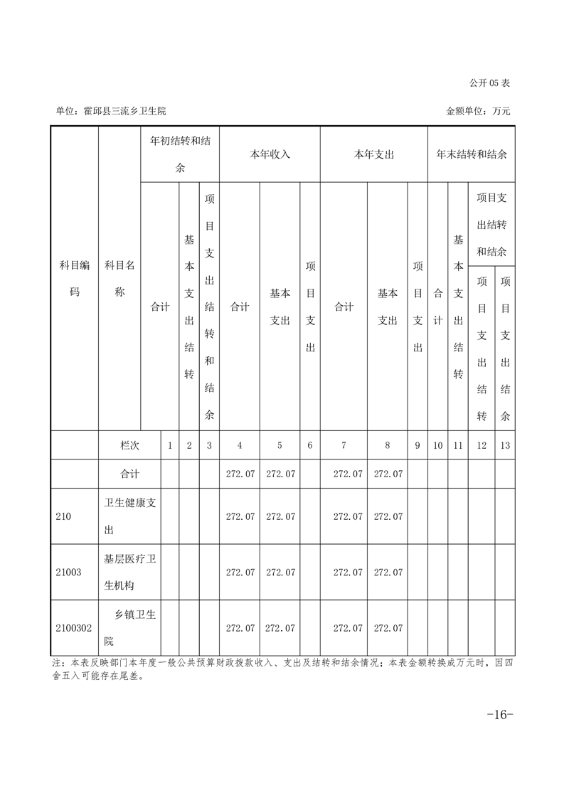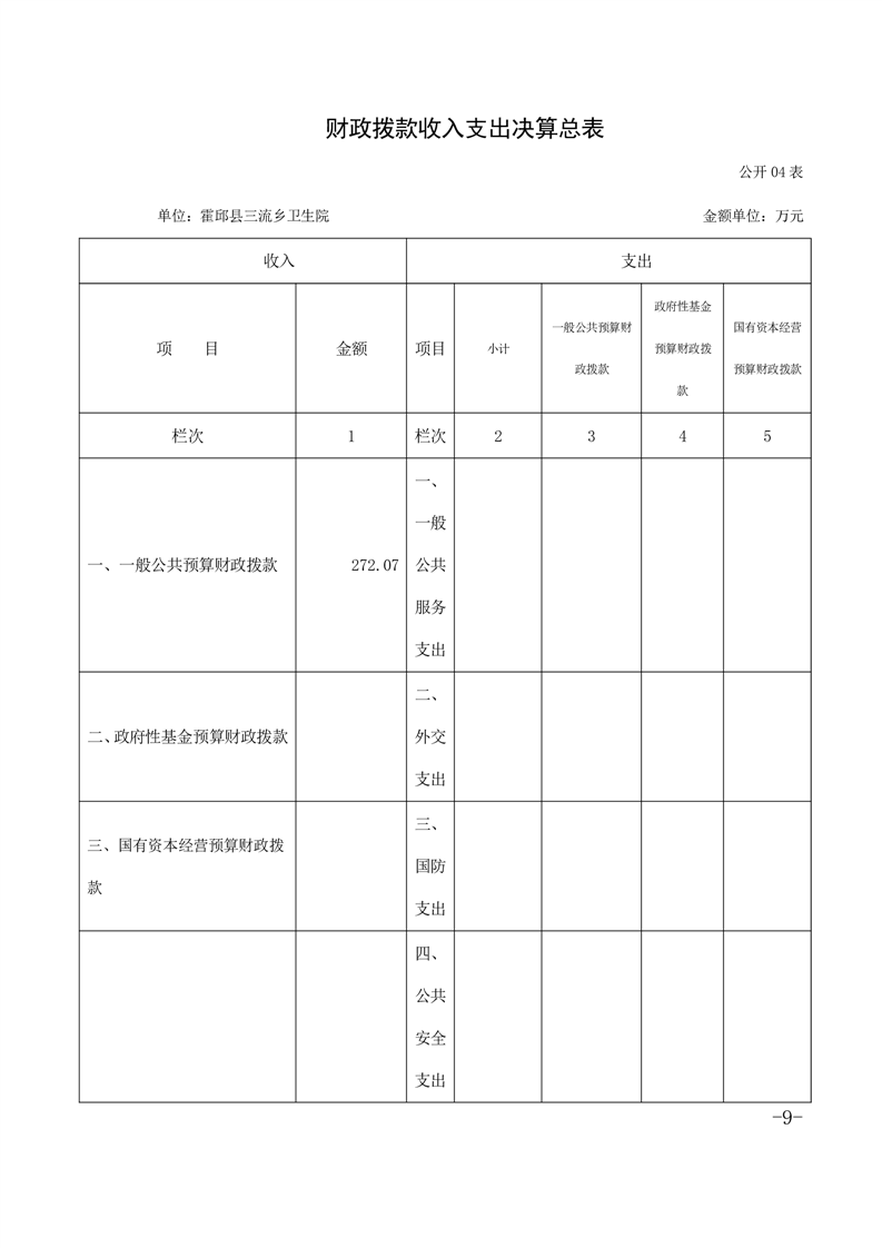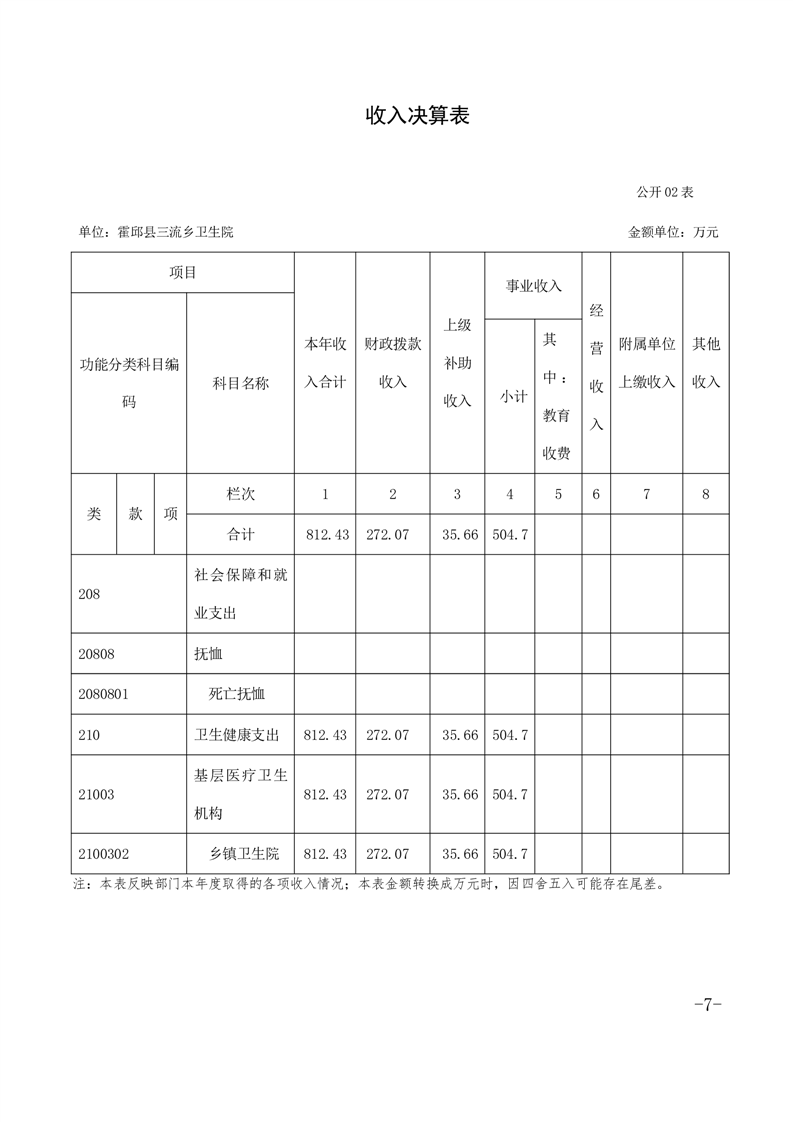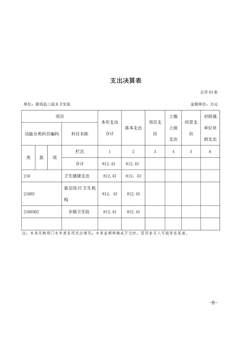 霍邱县三流乡卫生院2020单位决算公开