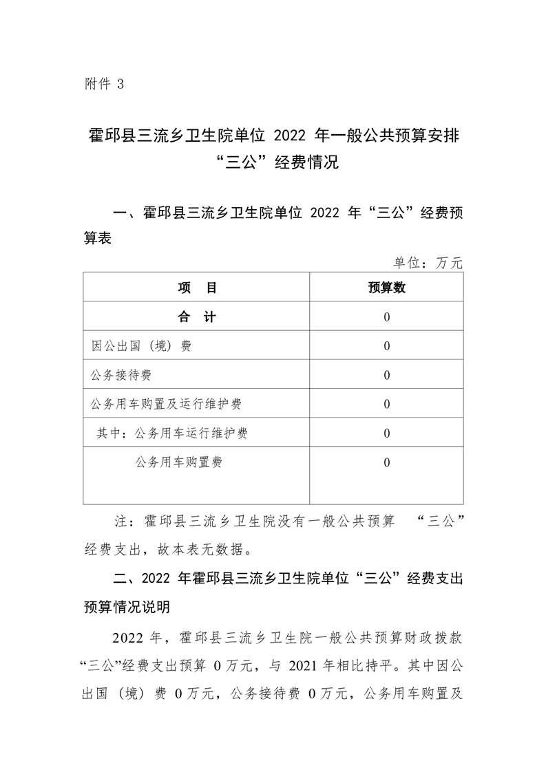三流乡卫生院2022年一般公共预算安排“三公”经费情况
