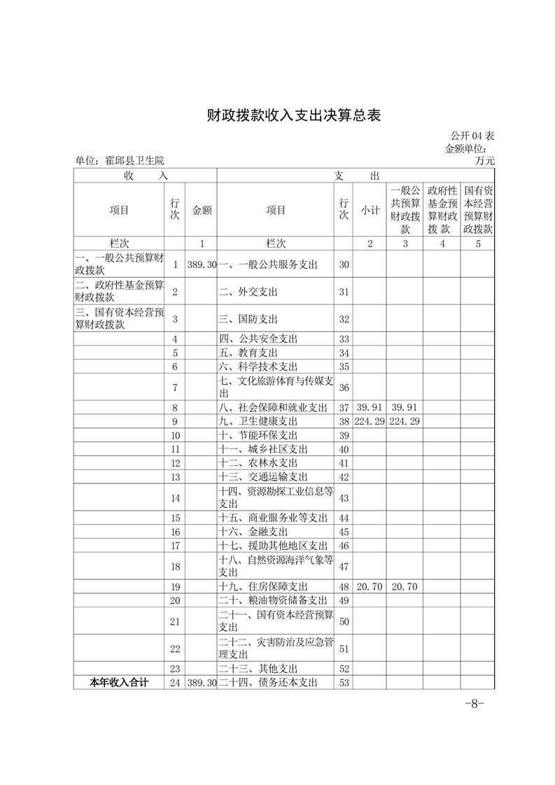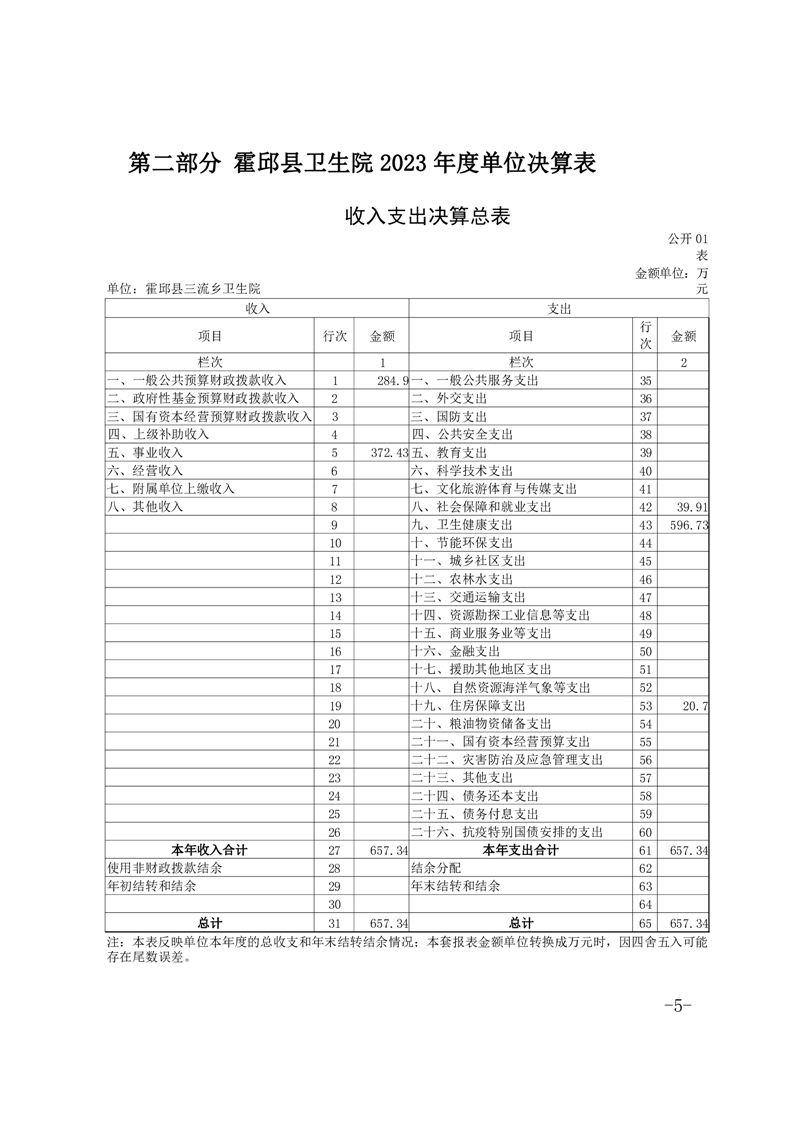 霍邱县三流乡卫生院2023年度决算公开
