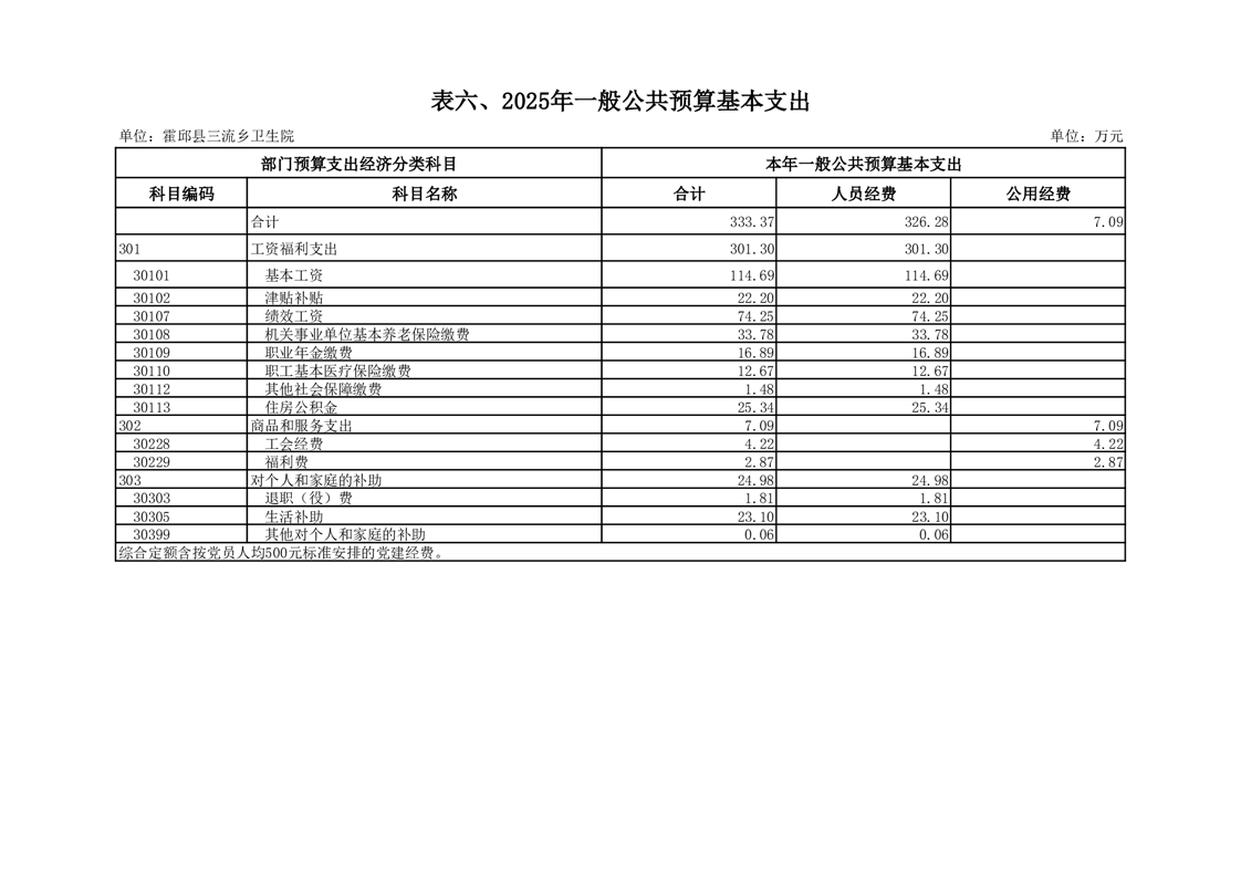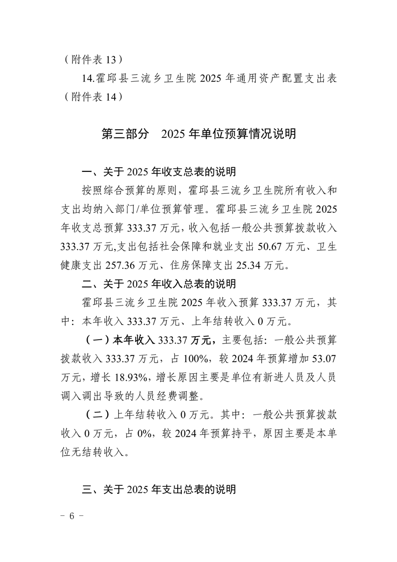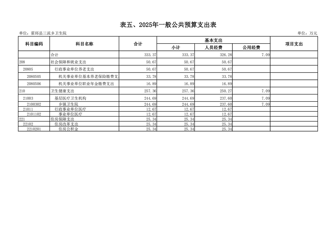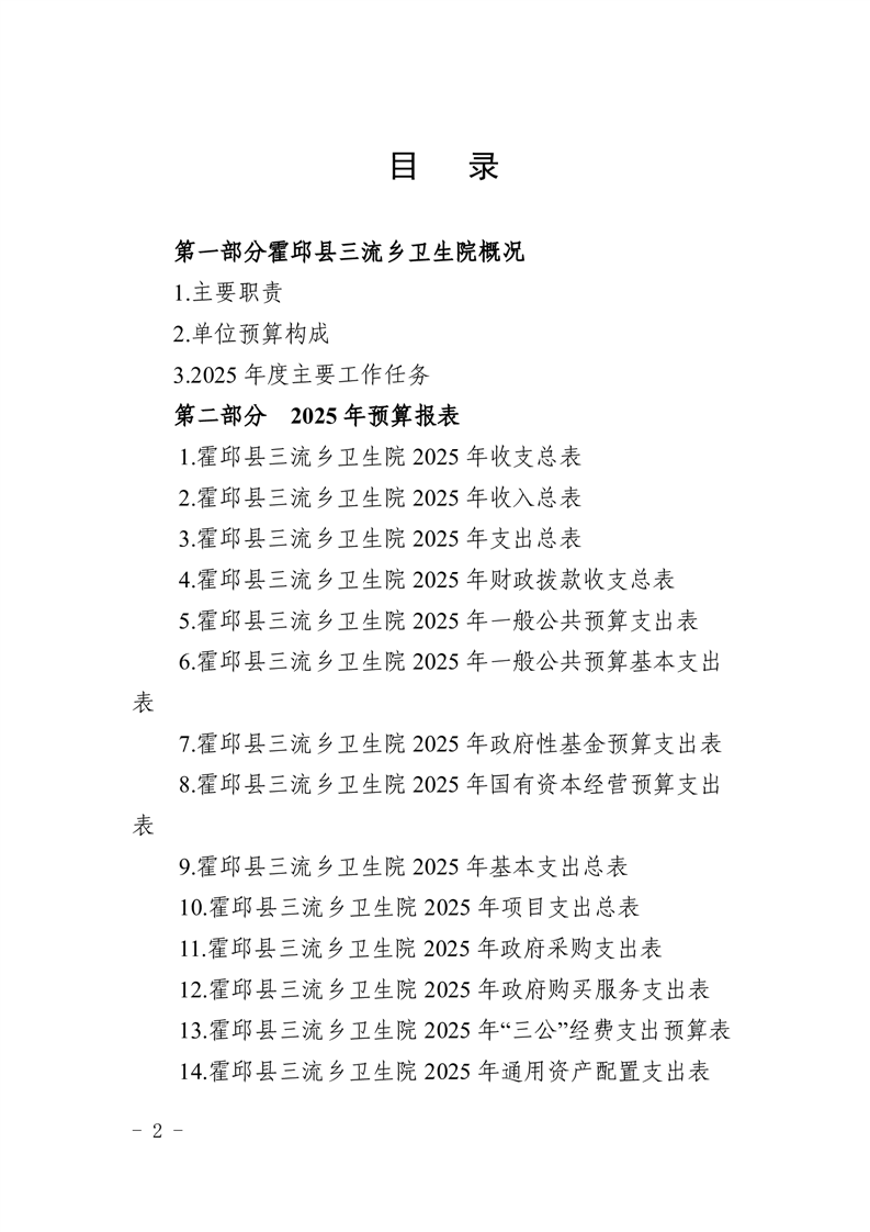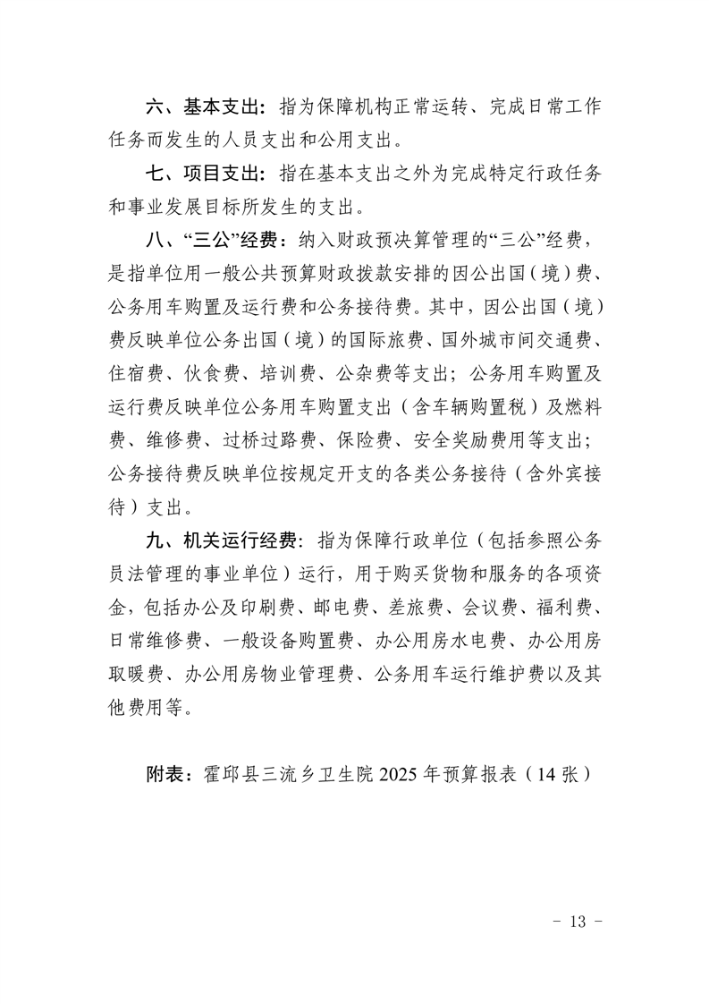霍邱县三流乡卫生院2025年部门单位预算公开