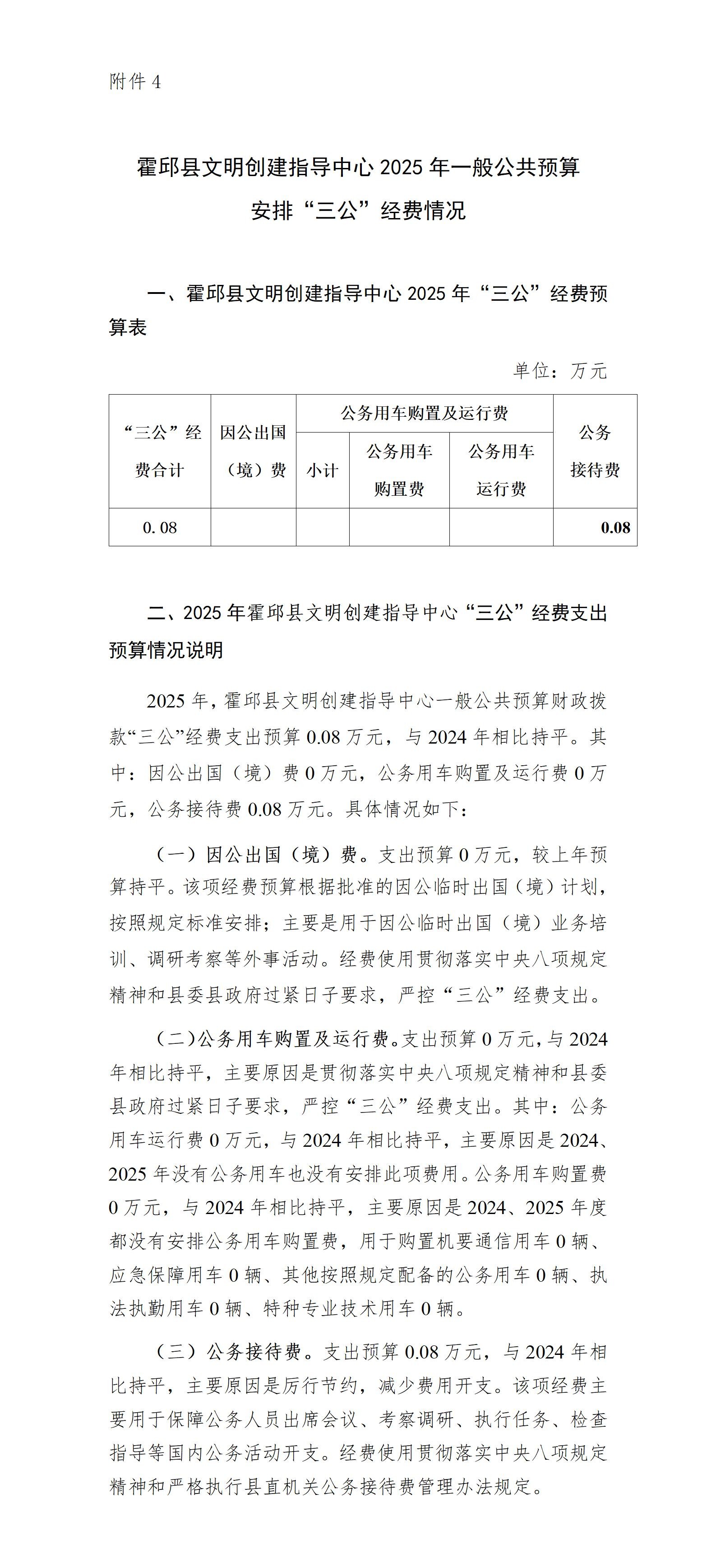 文明创建中心2025年部门单位一般公共预算安排“三公”经费情况公开