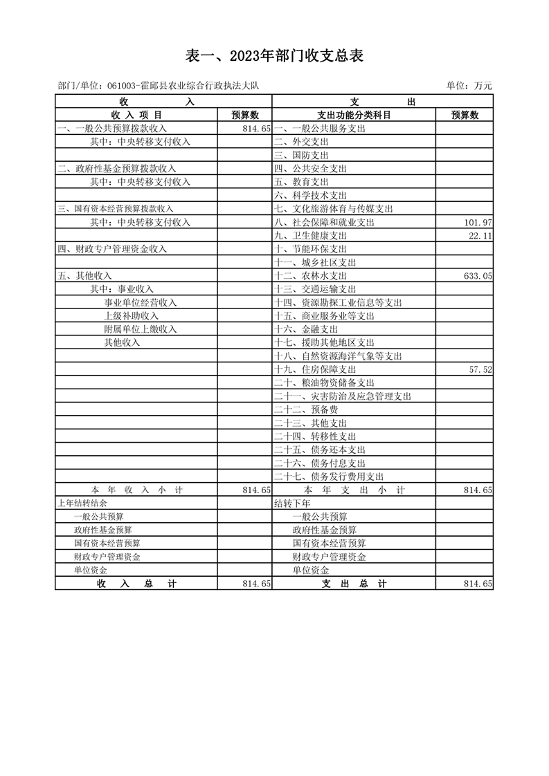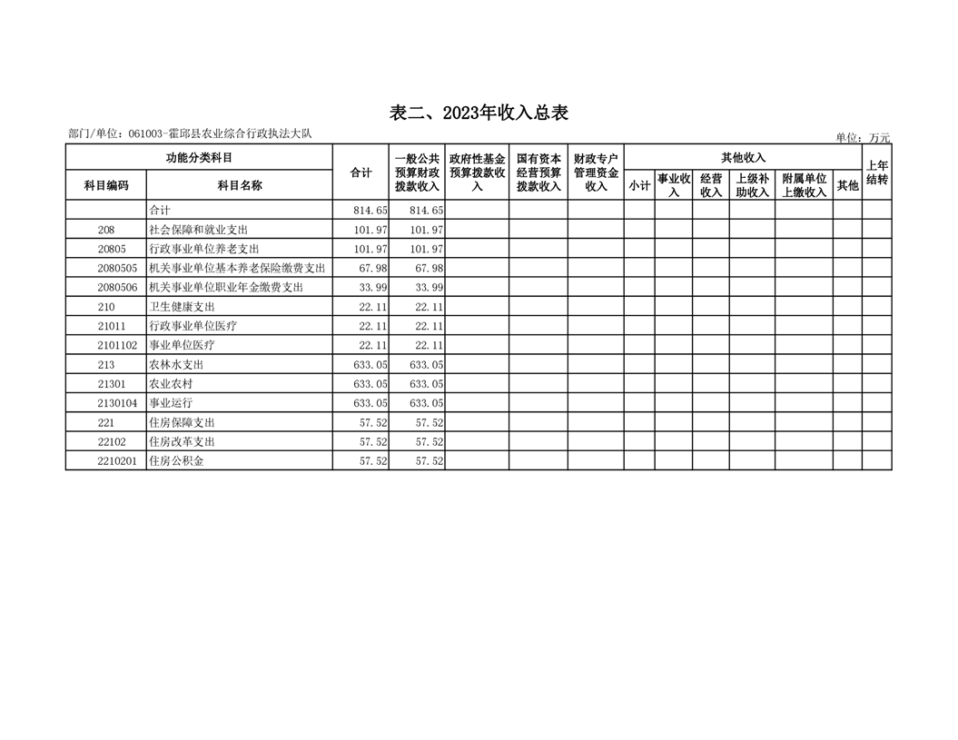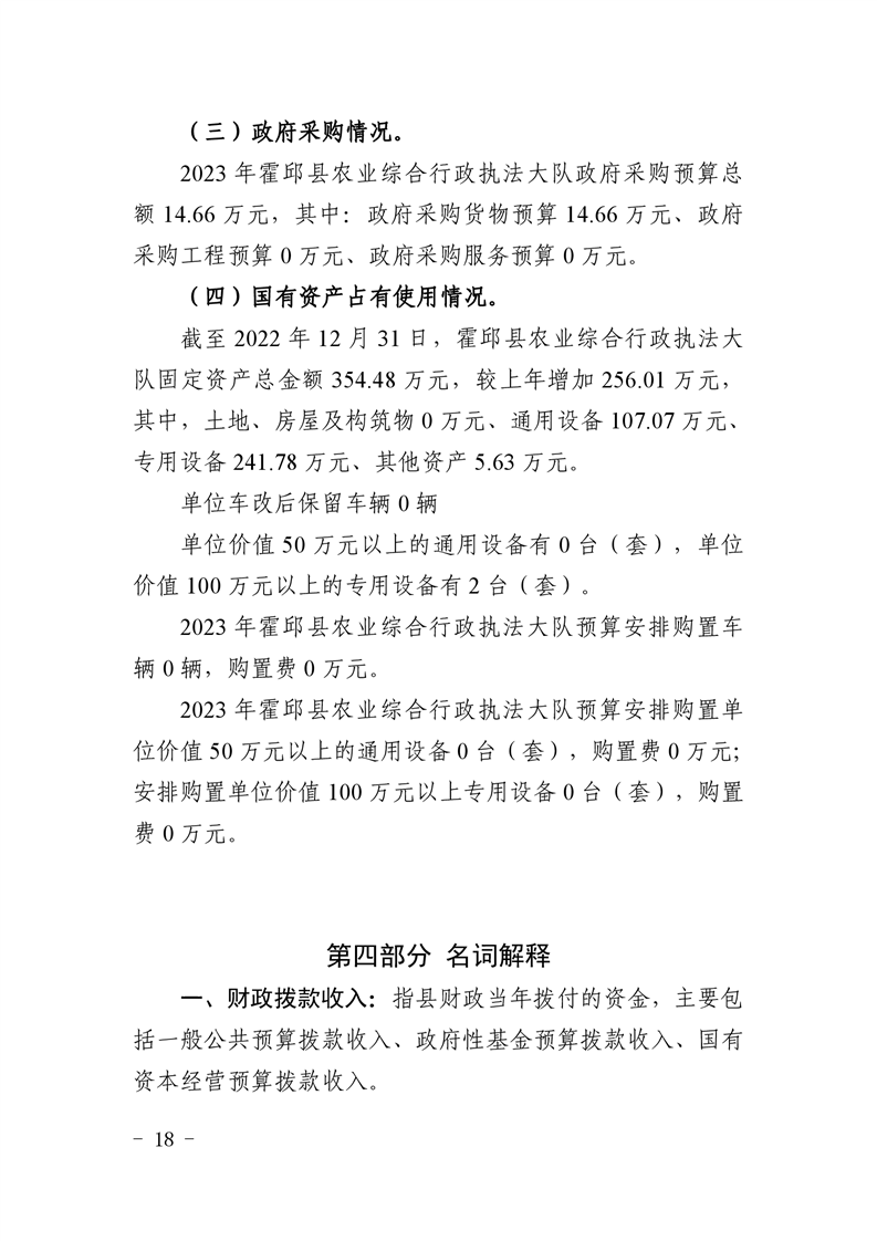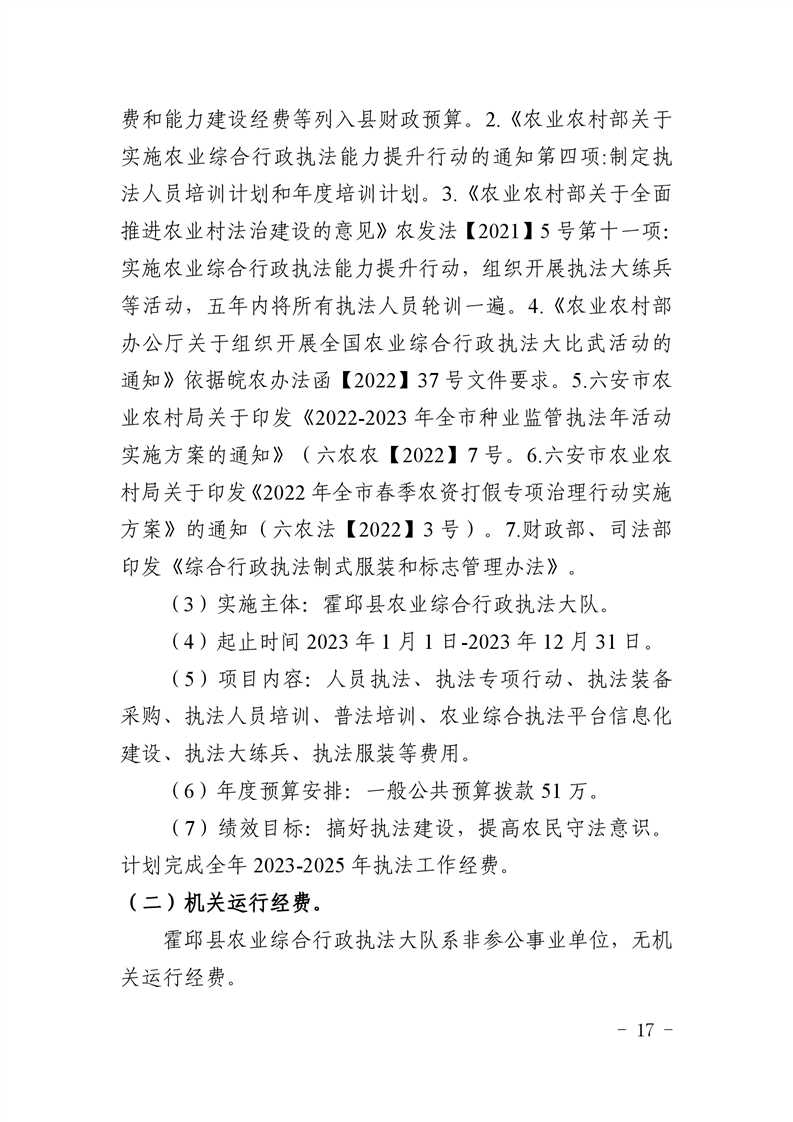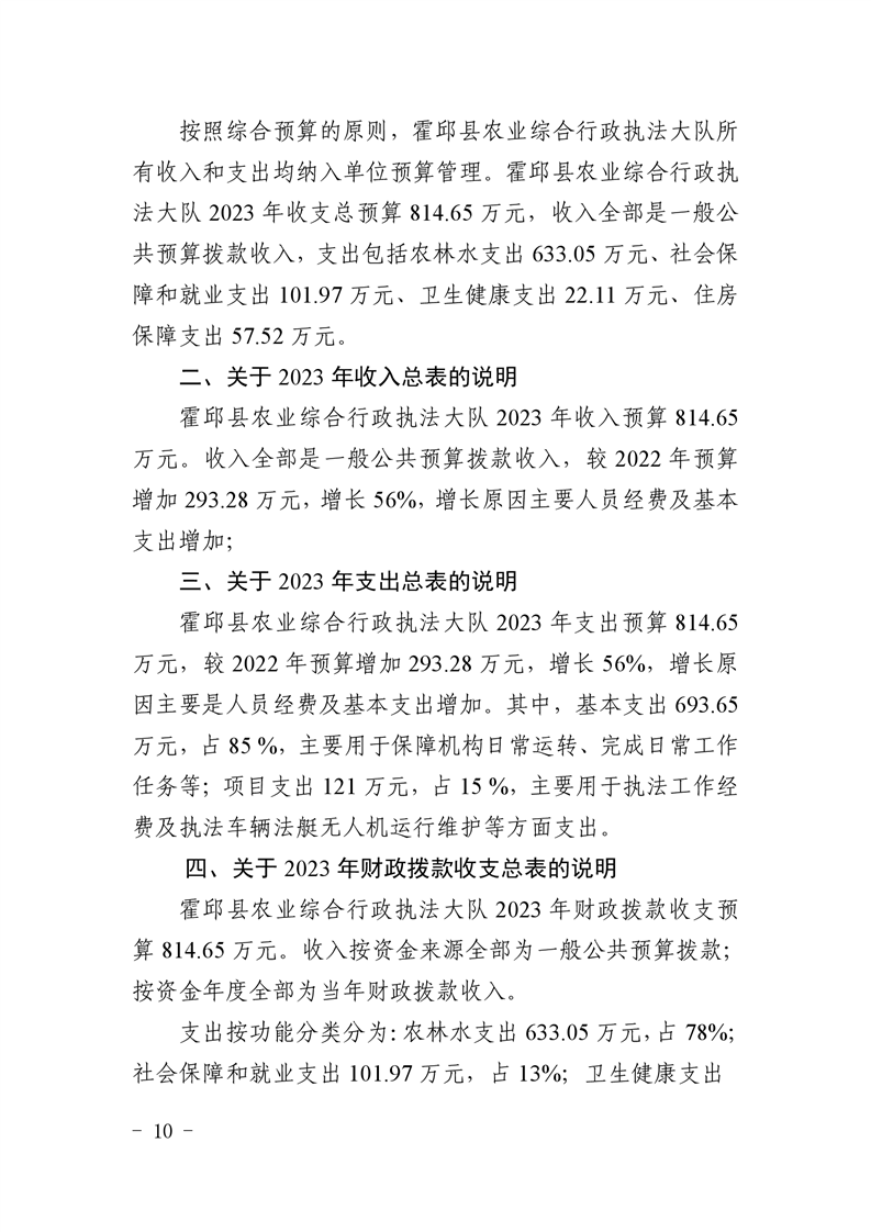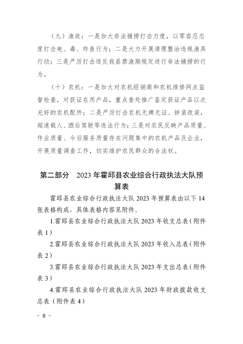 霍邱县农业综合行政执法大队2023年单位预算公开