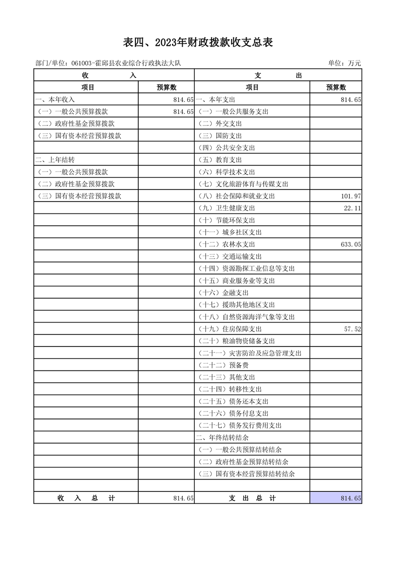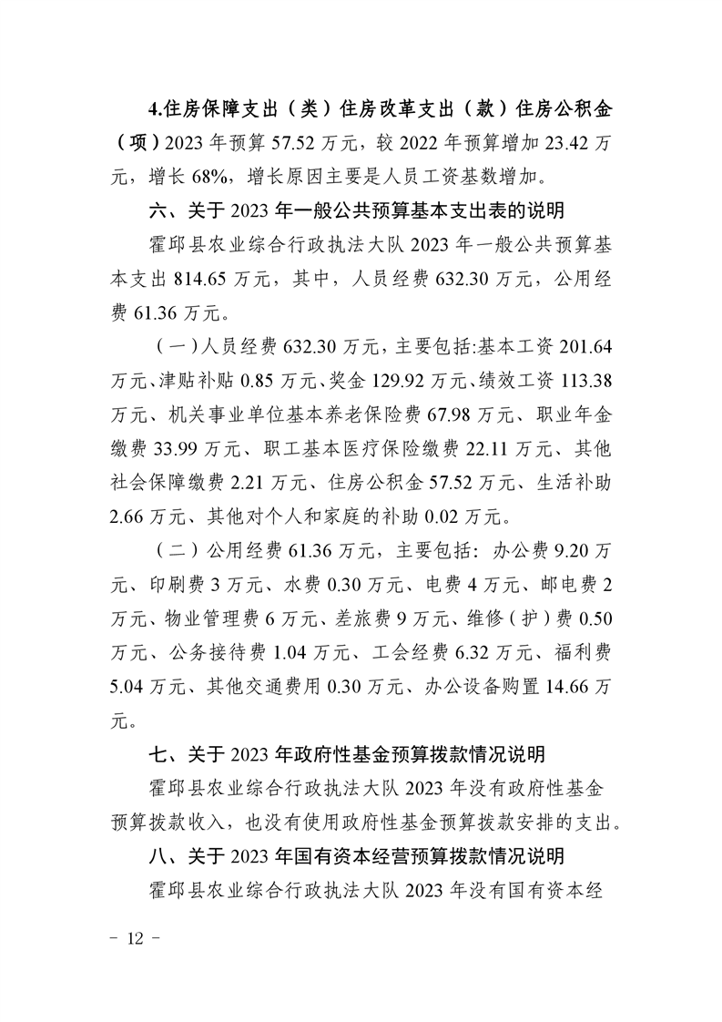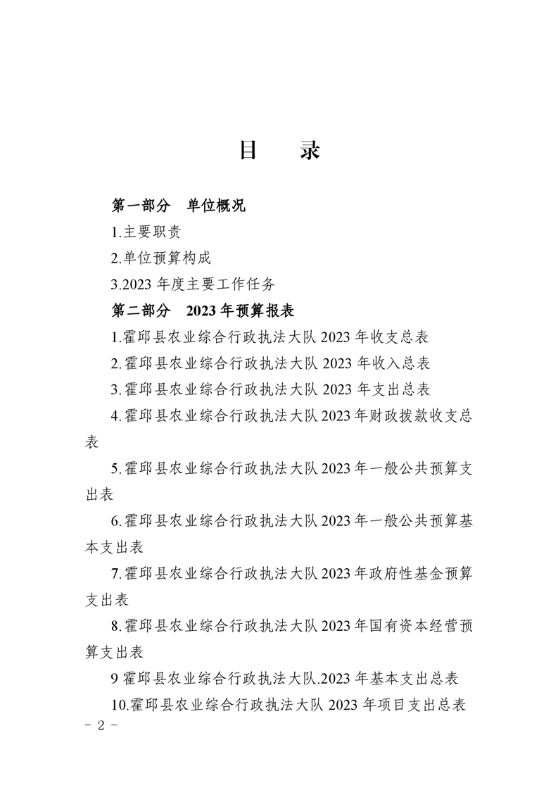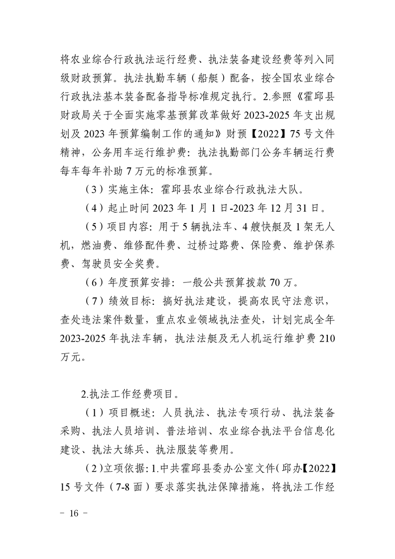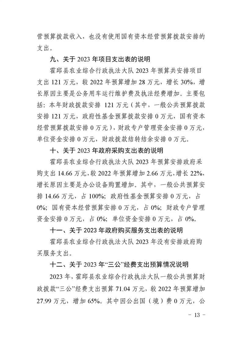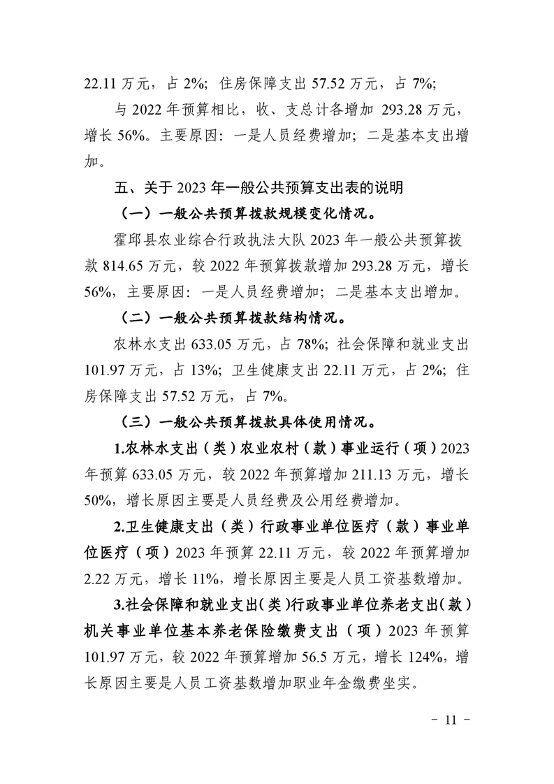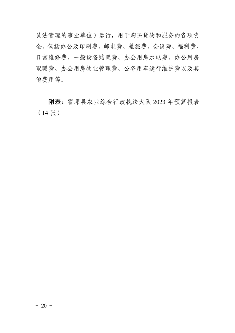 霍邱县农业综合行政执法大队2023年单位预算公开