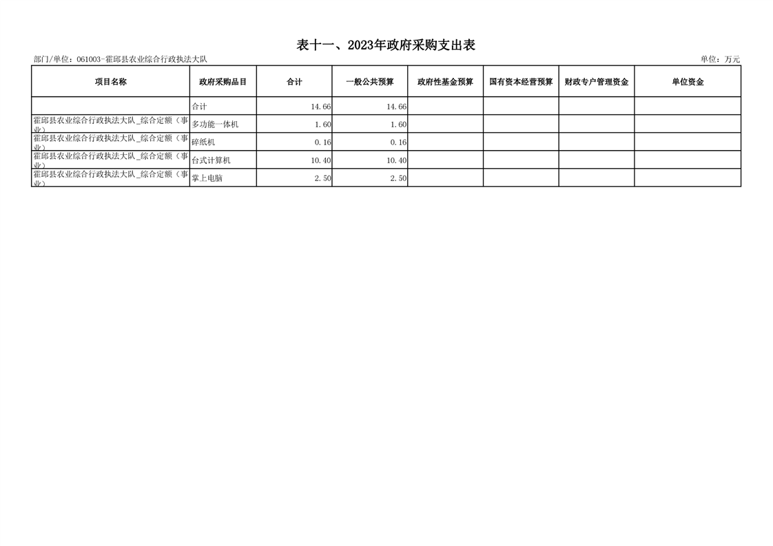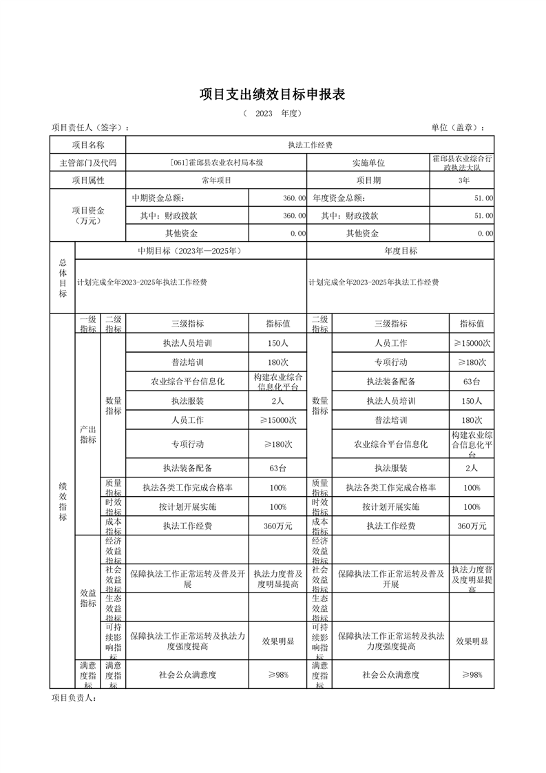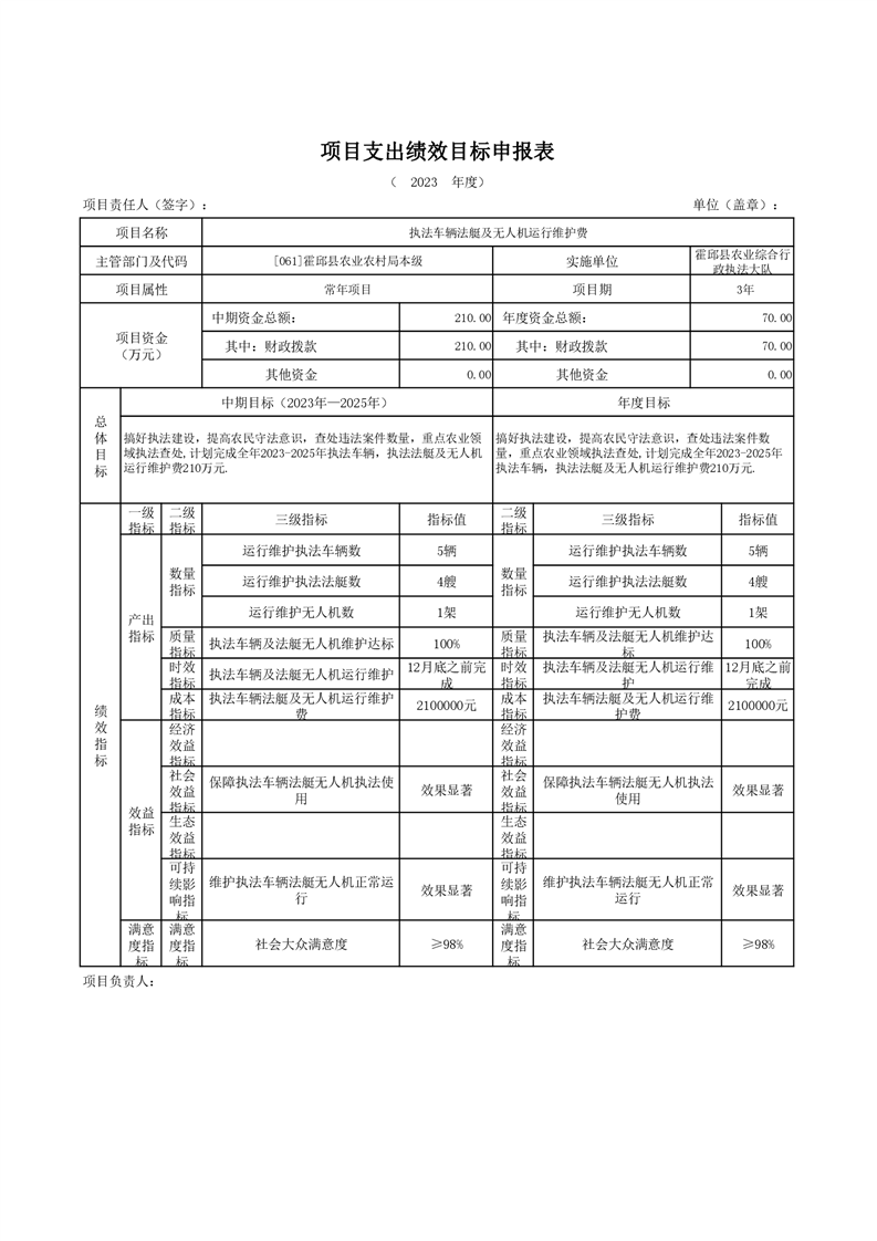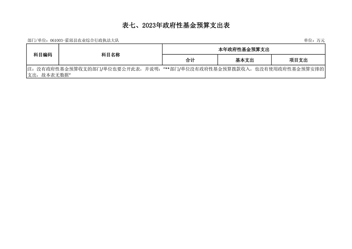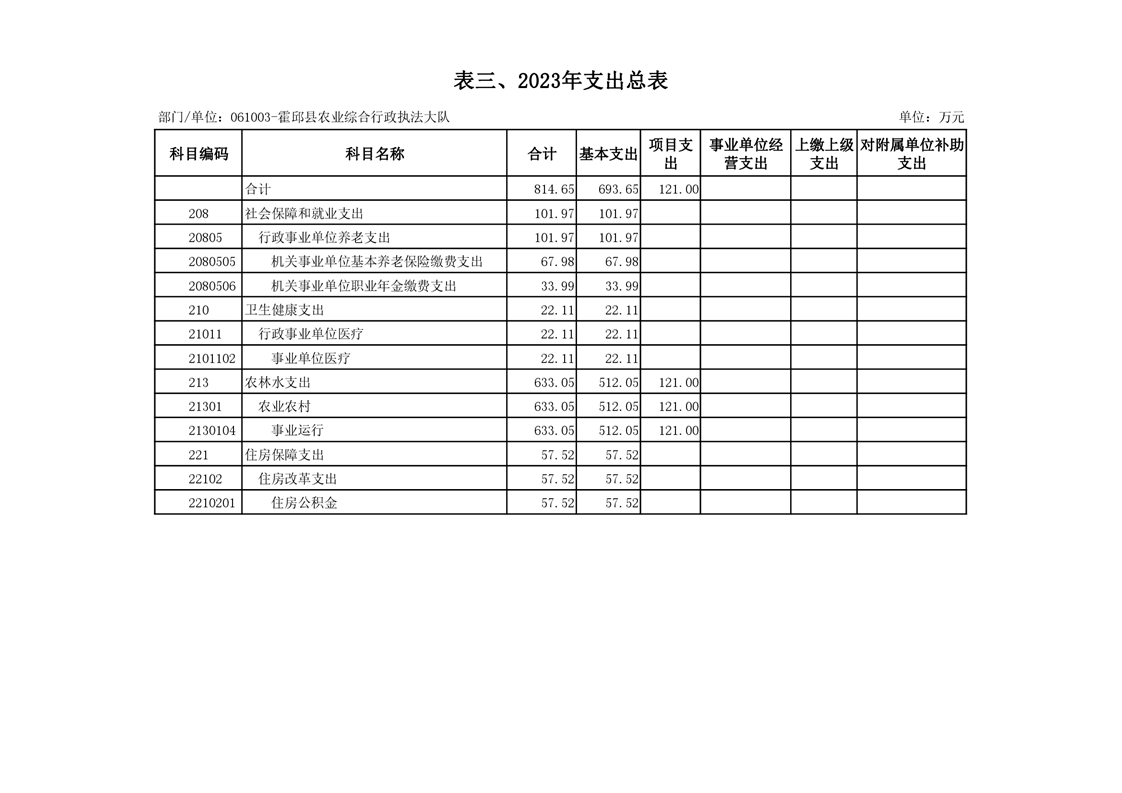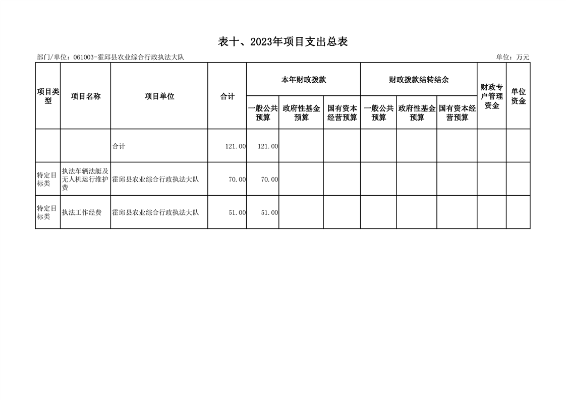 霍邱县农业综合行政执法大队2023年单位预算公开