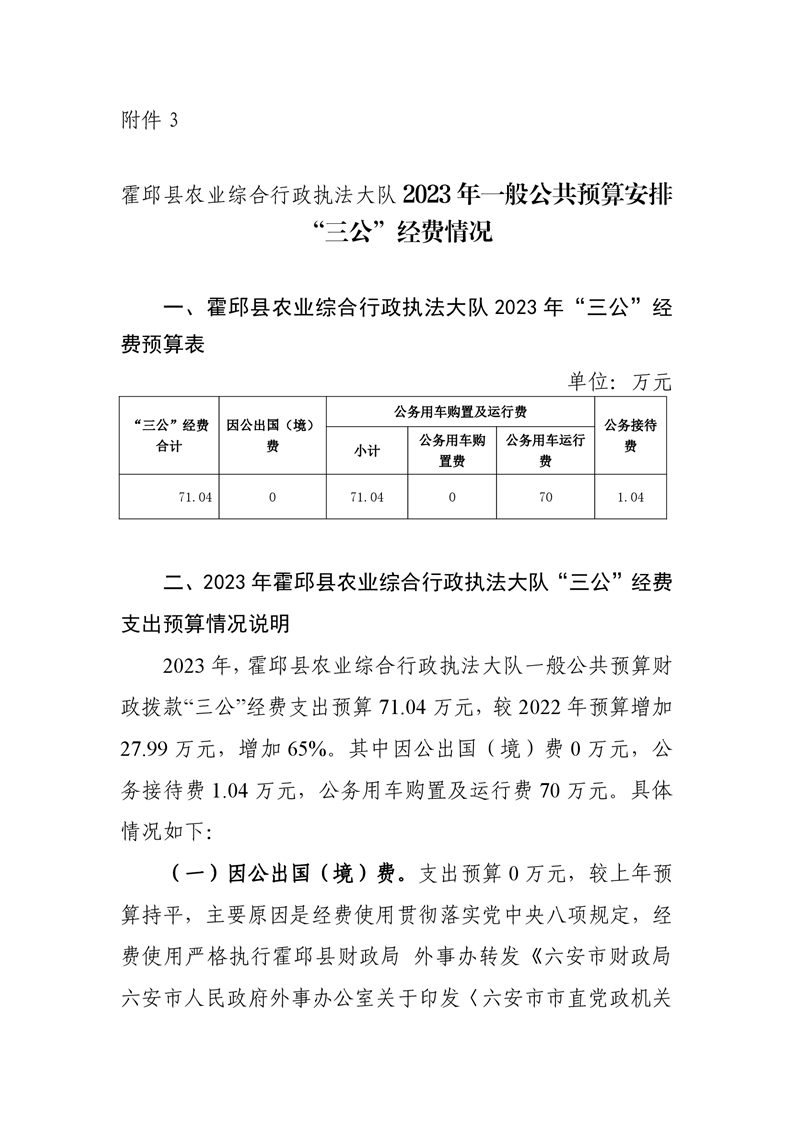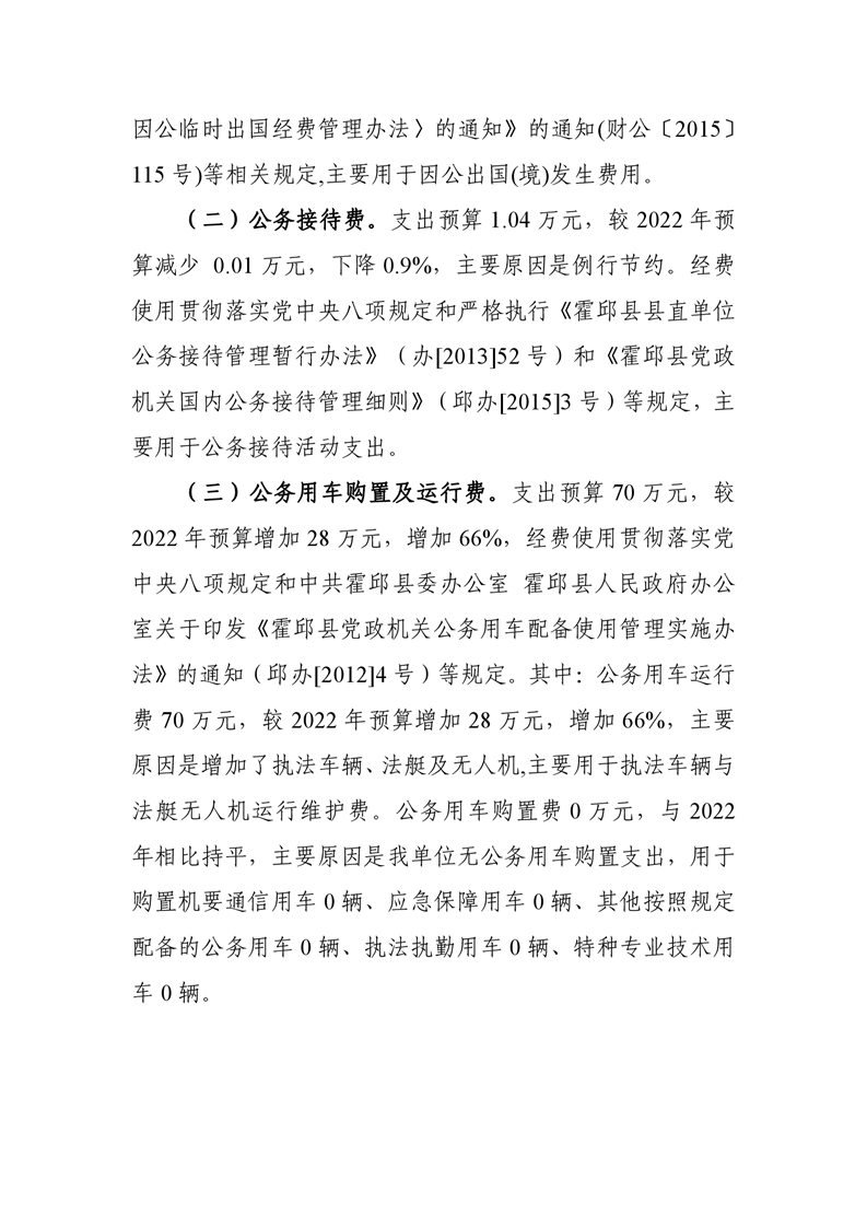 霍邱县农业综合行政执法大队2023年一般公共预算安排“三公”经费情况