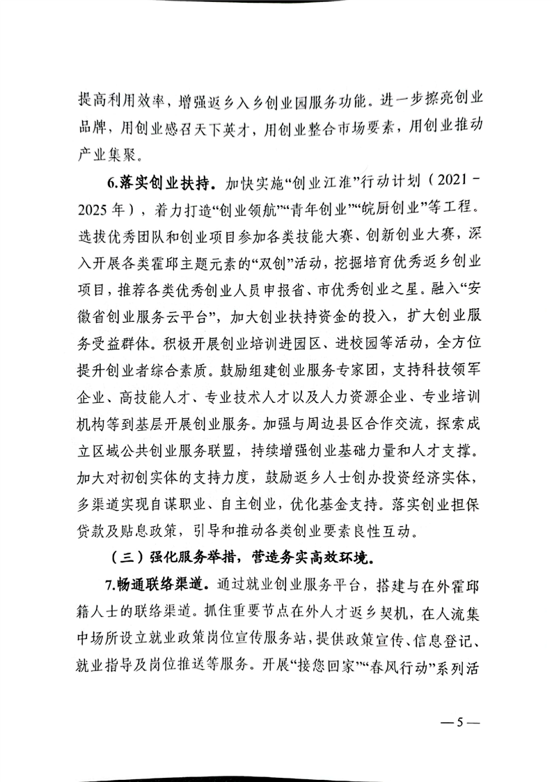 【人社】霍邱县“鸿雁回归”就业创业工程实施方案